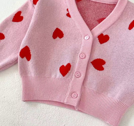 New pink and red heart thick cardigan