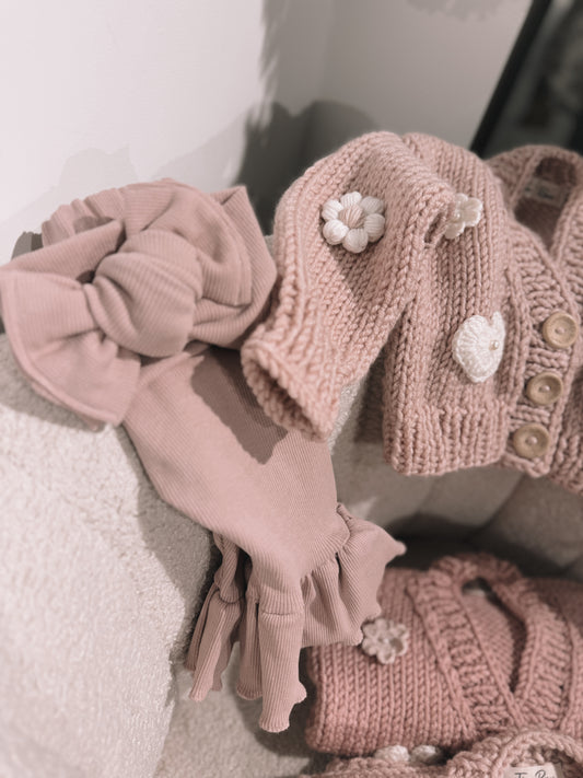 In stock 4 piece pink knit set gift box