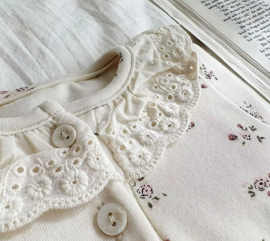 Pre order soft cotton floral Peter Pan collar top and leggings
