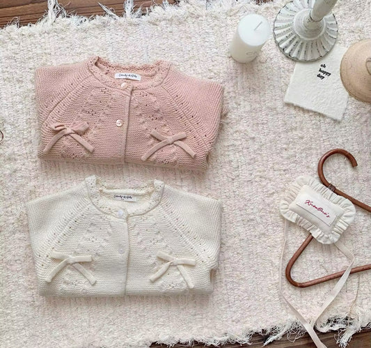 Pre order soft pink ribbon booties (matches our soft ribbon cardigan)