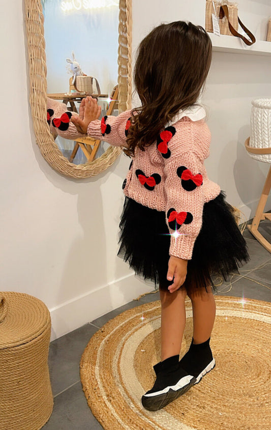 Handknitted pink flower cardigan, top, tutu and tights 4 piece set