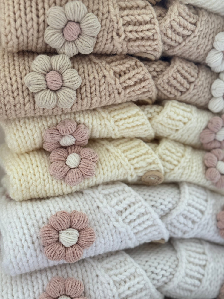 In stock hand knitted dark pink daisies cardigan