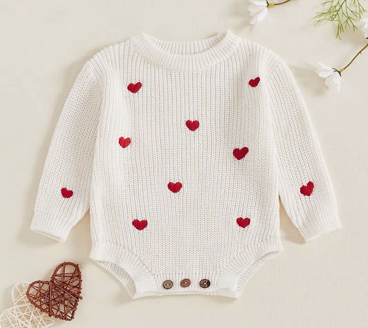 Pre order Valentines chunky knit embroidered heart rompers