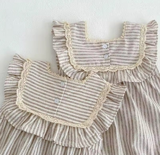 Summer brown stripe romper/dress (pre order)