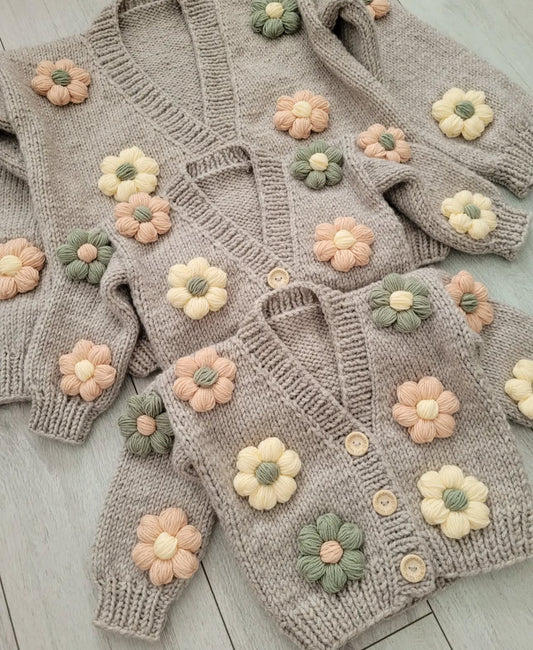 Mama and me handknitted autumn flowers 2 cardigan set