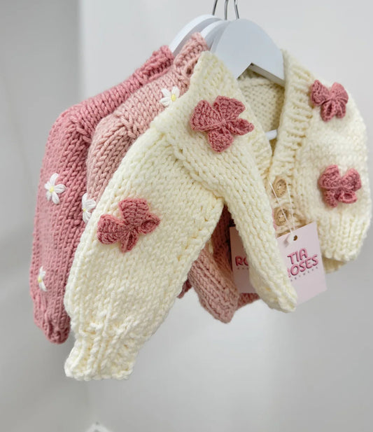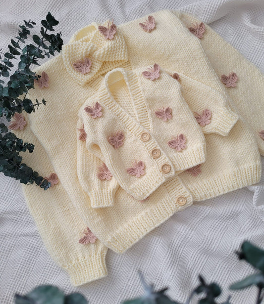 Mama and me handknitted butterfly 2 cardigan set