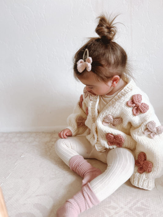 Mama and me handknitted loop bow 2 cardigan set cream
