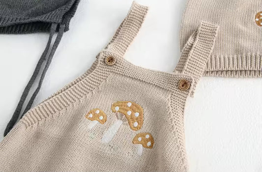 Handknitted rose beige romper/set