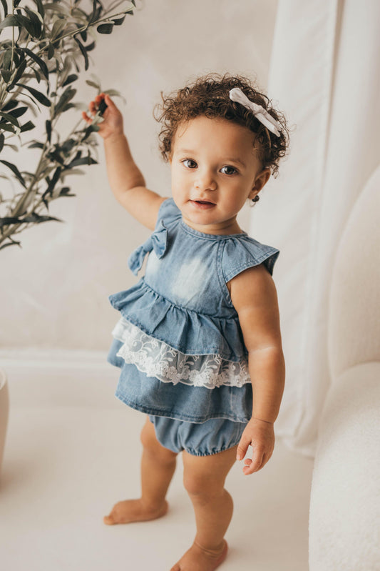 Made to order summer two piece blue pin stripe top and bloomers (pre order)