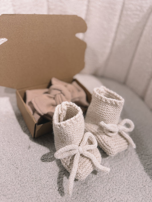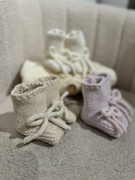 Pre order soft white handknit strawberry booties (matches our handknit cardigan)
