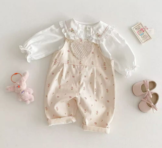 Pre order spring floral print denim dungarees and embroidered flower collar shirt