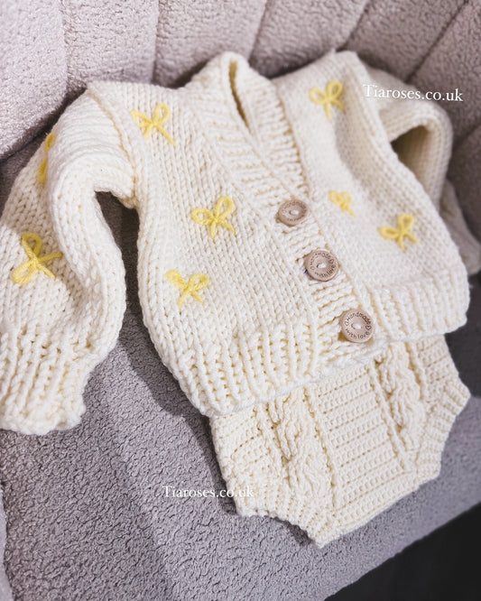 Pre order 2 piece spring floral dress and mustard cardigan set