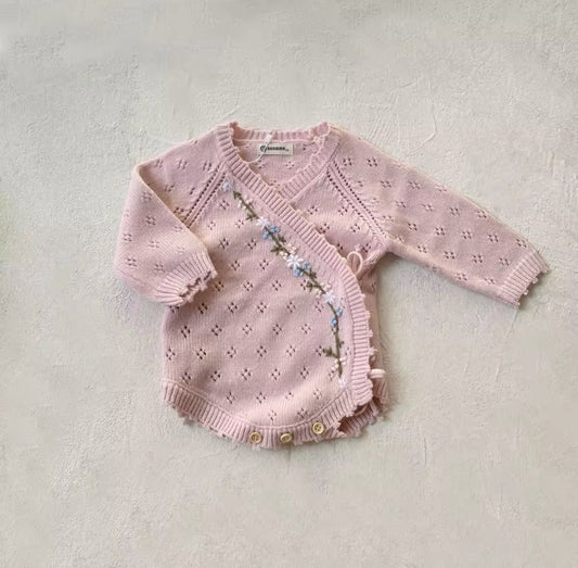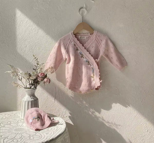Pre order soft pink embroidered spring flower HAT (matches our romper)