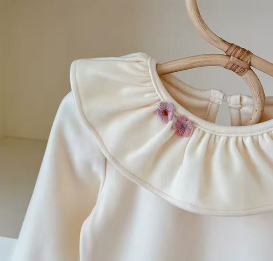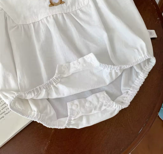 Pre order spring flower embroidered Peter Pan collar cotton rompers