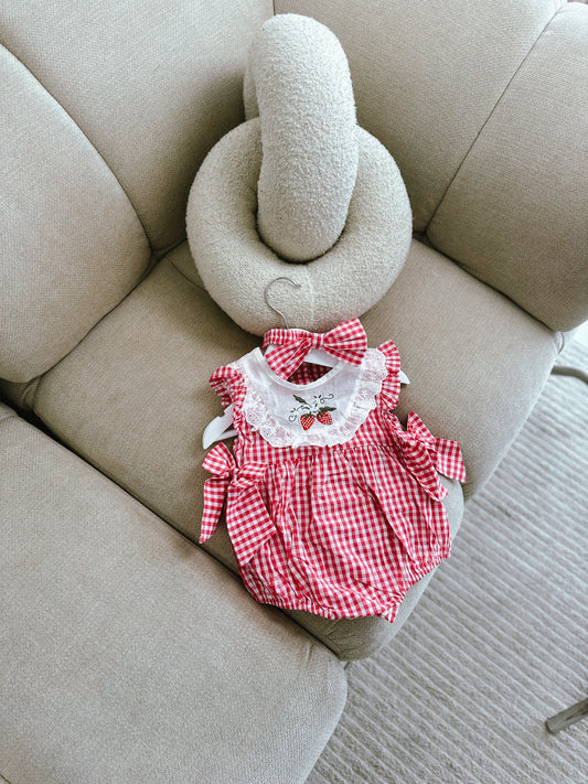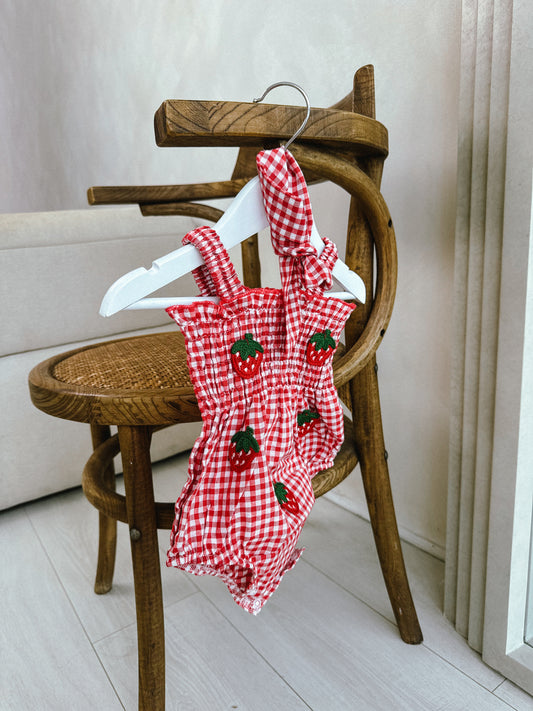 Pink strawberry print swimming costume/ruffle costume/ two piece collection