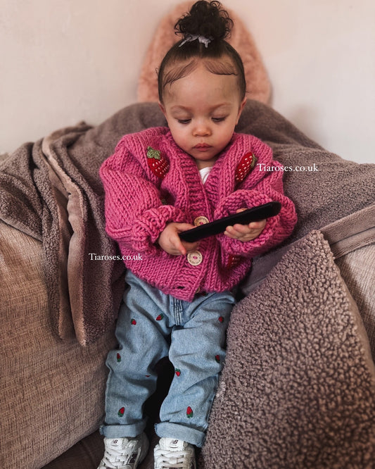 New style spring summer Tia Roses strawberry handknitted cardigan