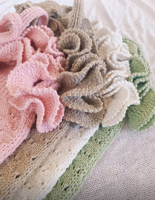 Pre order summer hand knitted heart ruffle rompers