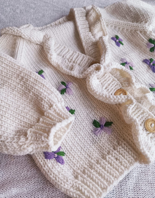 Pre order summer hand knitted lavender ruffle cardigan