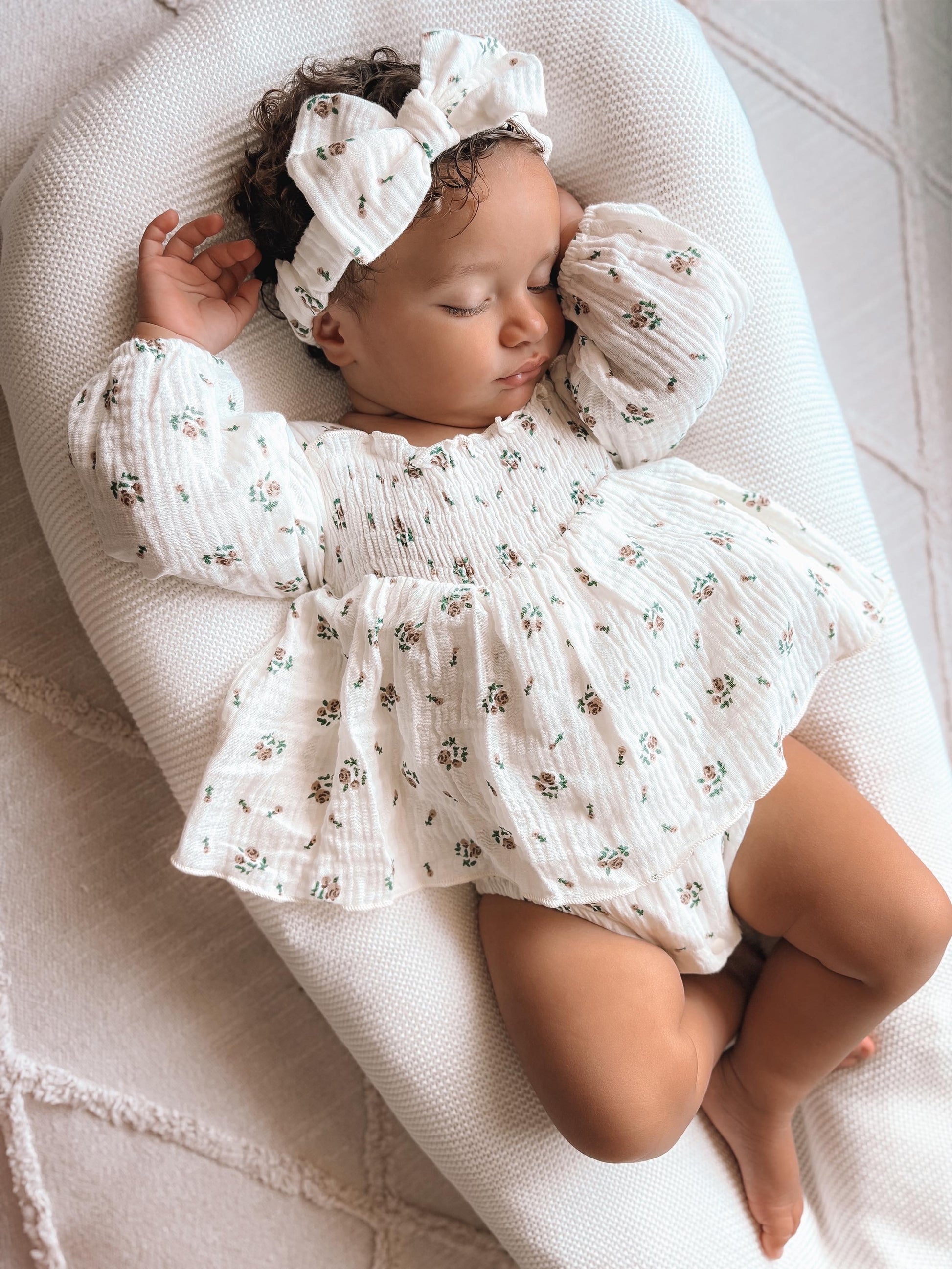 Floral cream romper and headband set
